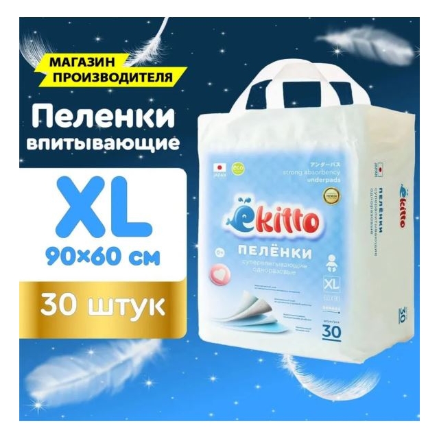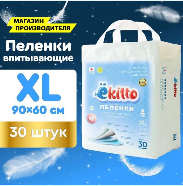 Пелёнки впитывающие EKITTO 60Х90 XL 30шт