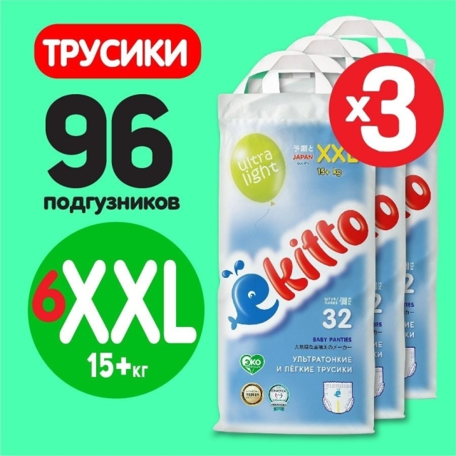 Подгузники-трусики Ekitto ультра тонкие XXL, 96 шт