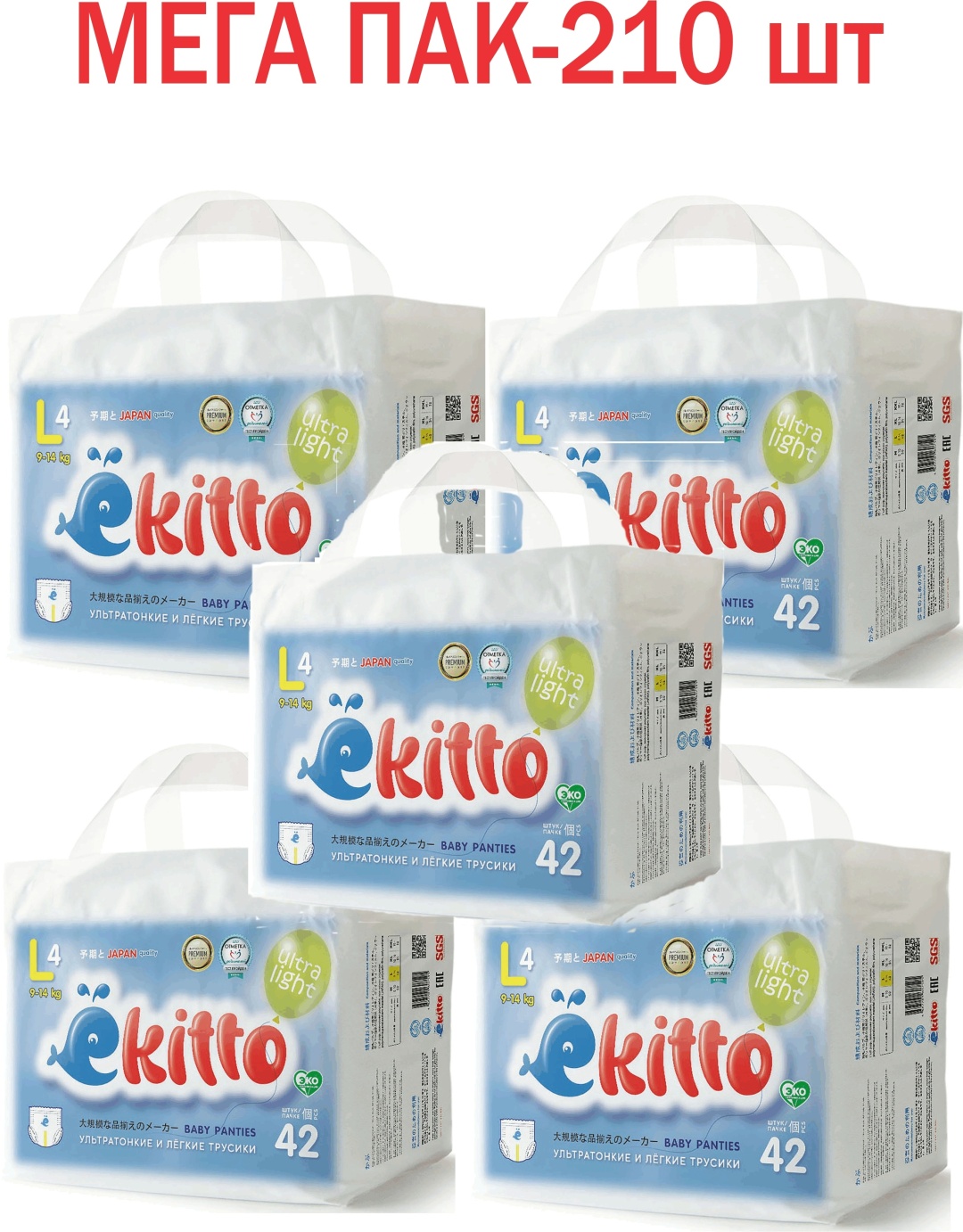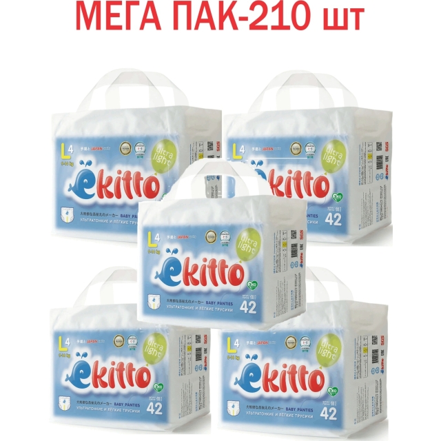 Подгузники-трусики Ekitto ультра тонкие L, 210 шт