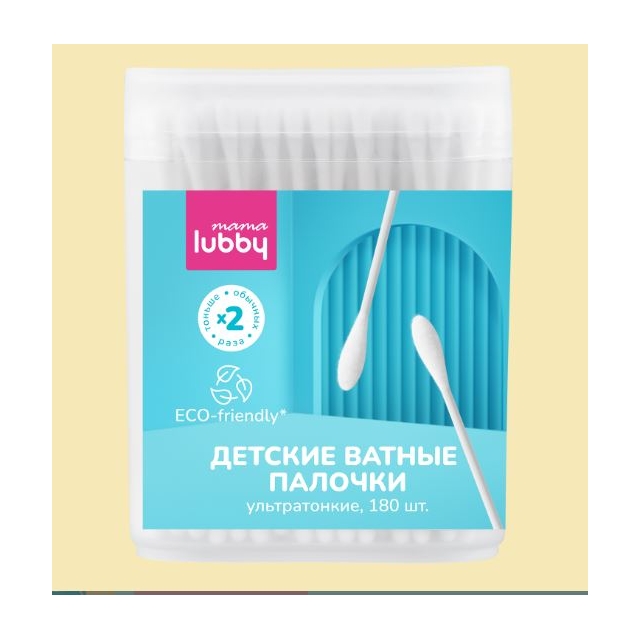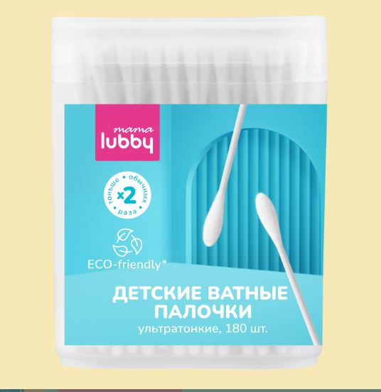 lubby Детские ватные палочки mama ультратонкие от 0 месяцев, 180 шт.