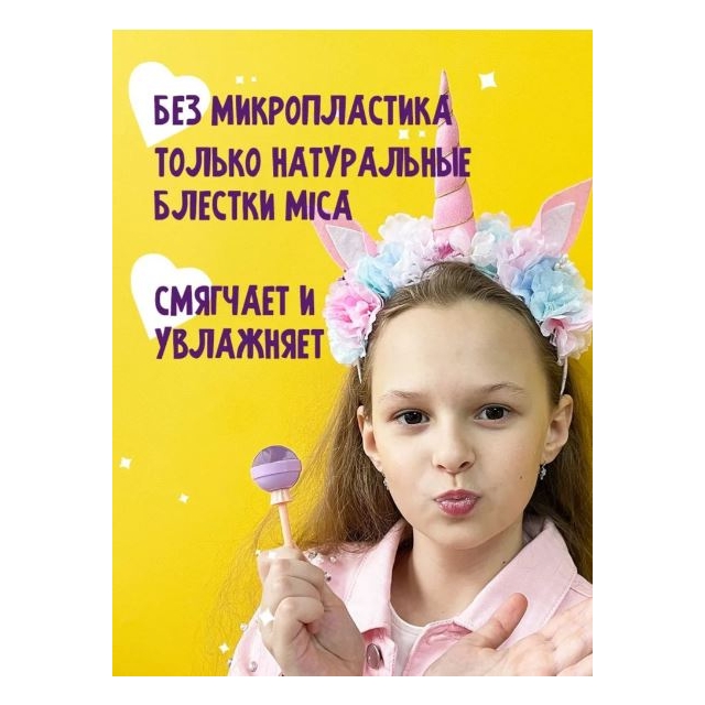 В составе нашего блеска для губ используются натуральные блестки Mica, которые производятся из природного минерала — слюды. Этот компонент полностью безопасен для детского организма и окружающей среды, что делает наш продукт идеальным выбором для заботливых родителей в качестве первой косметики девочки для макияжа.
