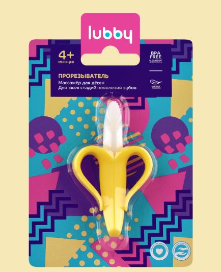 Lubby Прорезыватель - массажер для десен, Банан, 4+