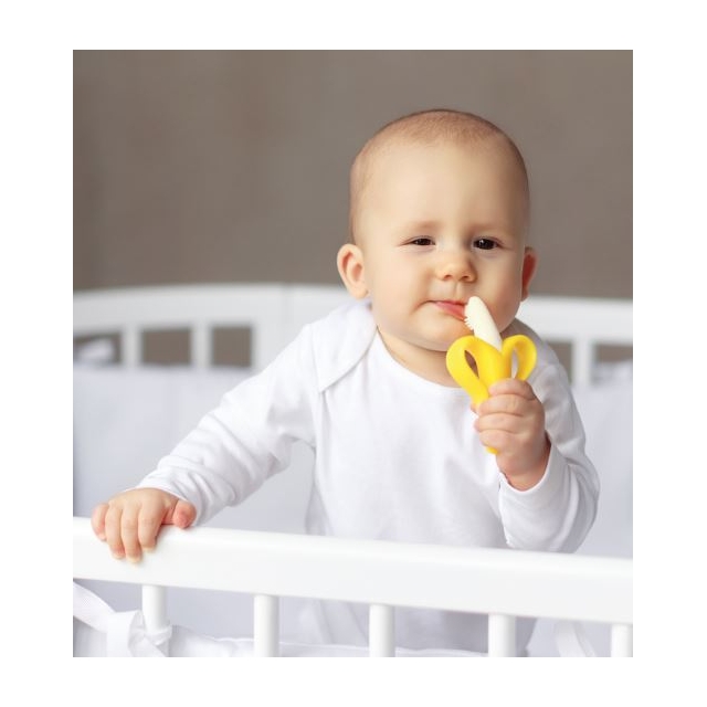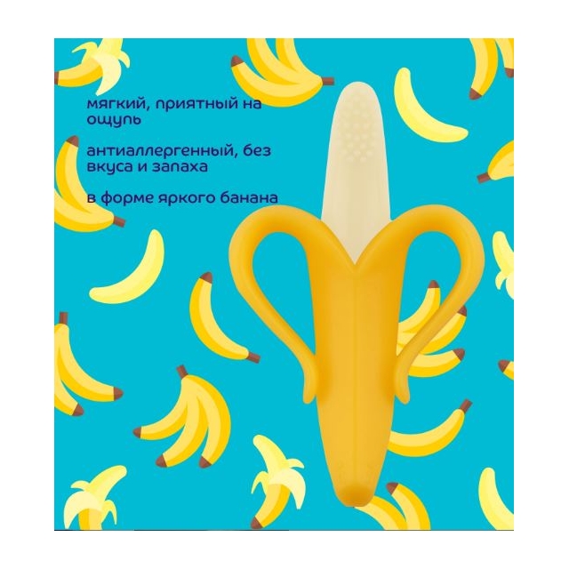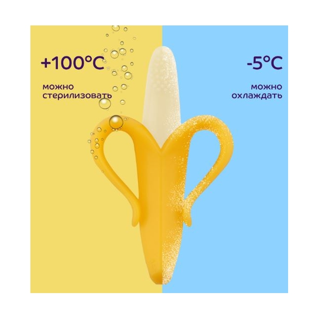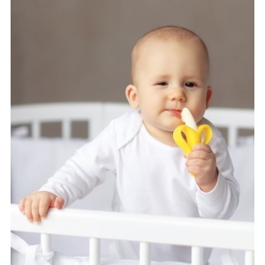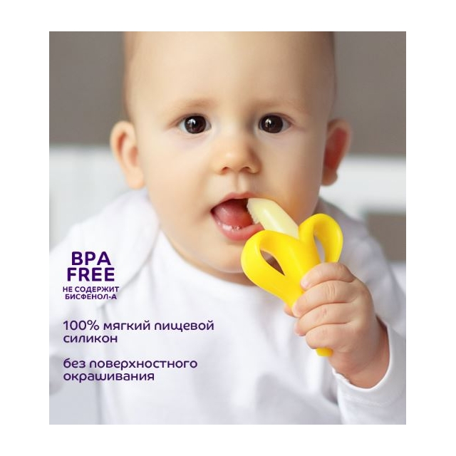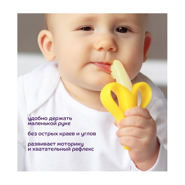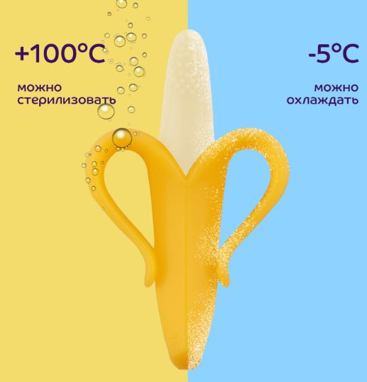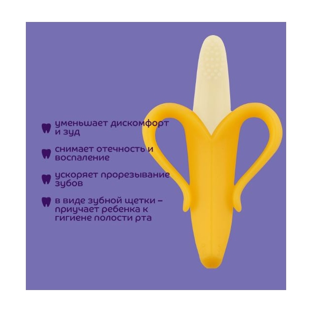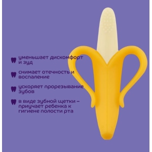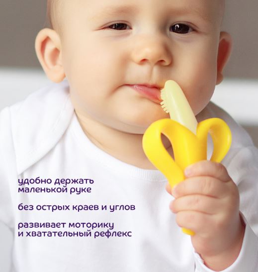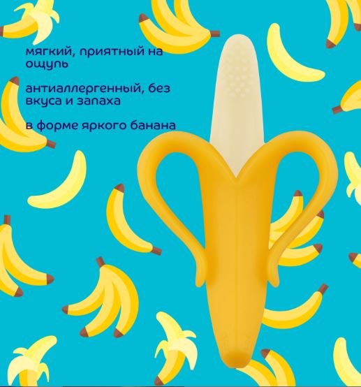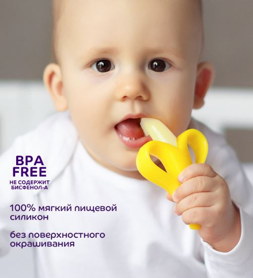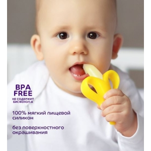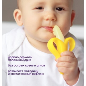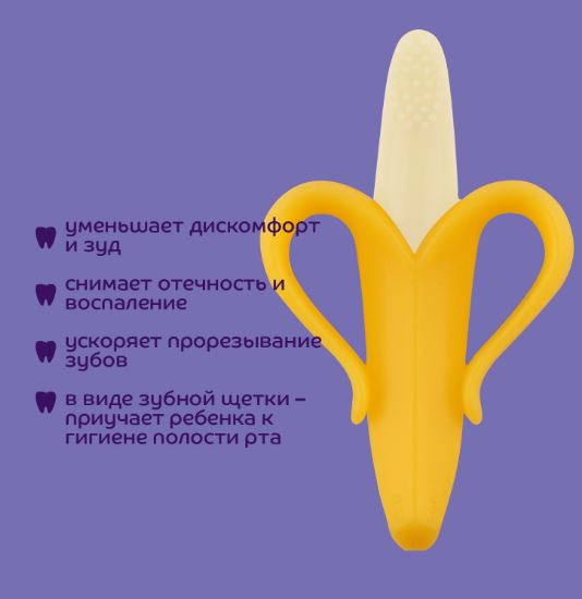Прорезыватель особенно востребован в период появления первых зубов у детей. Форма прорезывателя разработана специально для удобного захвата детскими ручками. Яркий цвет "банана" сосредоточит интерес малыша.Прорезыватель помогает справиться с неприятными ощущениями во время прорезывания зубов. Для усиления успокаивающего эффекта прорезыватель можно положить в холодильник на 10-15 минут перед тем, как давать его ребенку.