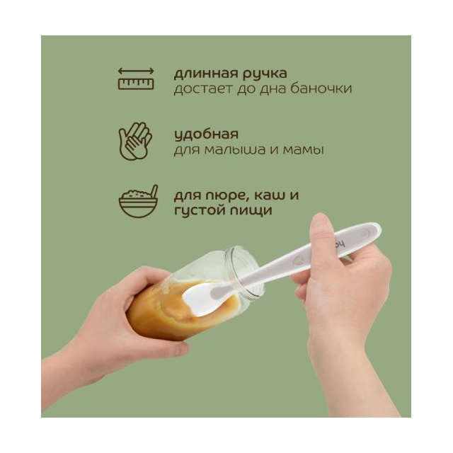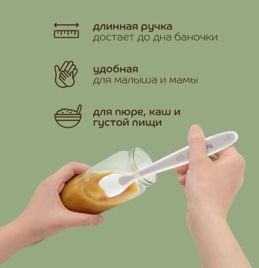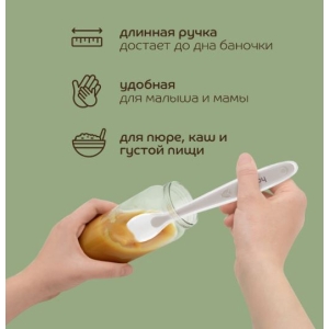Ложка предназначена для кормления ребенка. Мягкий материал черпачка не травмирует десна ребенка. Благодаря удлиненной ручке кормящему легко достать питание со дна баночки. Изогнутая ручка позволяет удобно держать ложечку во время кормления.