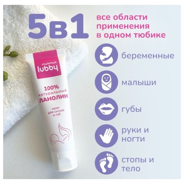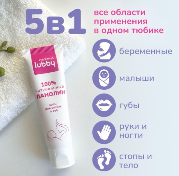 Lubby Ланолиновый крем для сухой кожи, для губ и сосков